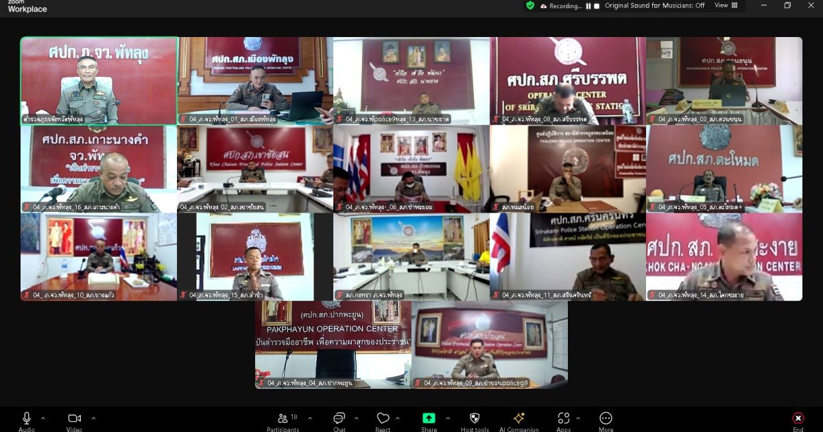 เข้าร่วมประชุมขับเคลื่อน ศปก.ภ.จว.พัทลุง ครั้งที่ 29/2567 ผ่านระบบทางไกลผ่านจอภาพ (Video Conference) โดยมี ฝ่ายอำนวยการ, กก.สส.ฯ, กลุ่มงานสอบสวนฯ, ศูนย์รับแจ้งเหตุฉุกเฉิน 191, ศอ.ปส.ฯ เข้าร่วมประชุม ณ ห้องประชุม ศปก.ภ.จว.พัทลุง และมี สภ.ในสังกัด ร่วมประชุม ณ ที่ตั้งหน่วย