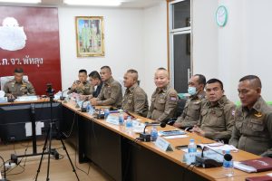 ณ ห้องประชุม ศปก ภ.จว.พัทลุง และมี สภ.ในสังกัด เฝ้าฟันผ่านระบบ zoom ณ ที่ตั้งหน่วย