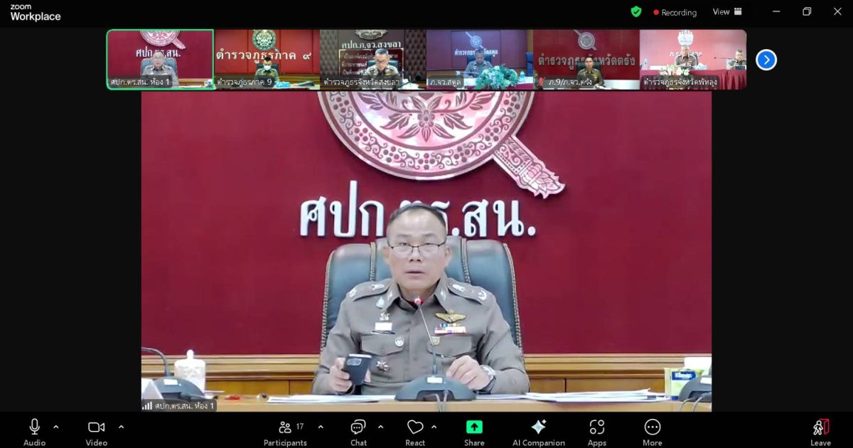โดยมี พล.ต.ท.ปิยะวัฒน์ เฉลิมศรี ผบช.ภ.9/ผบ.ศปก.ตร.สน. เป็นประธานการประชุม