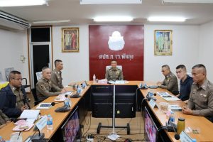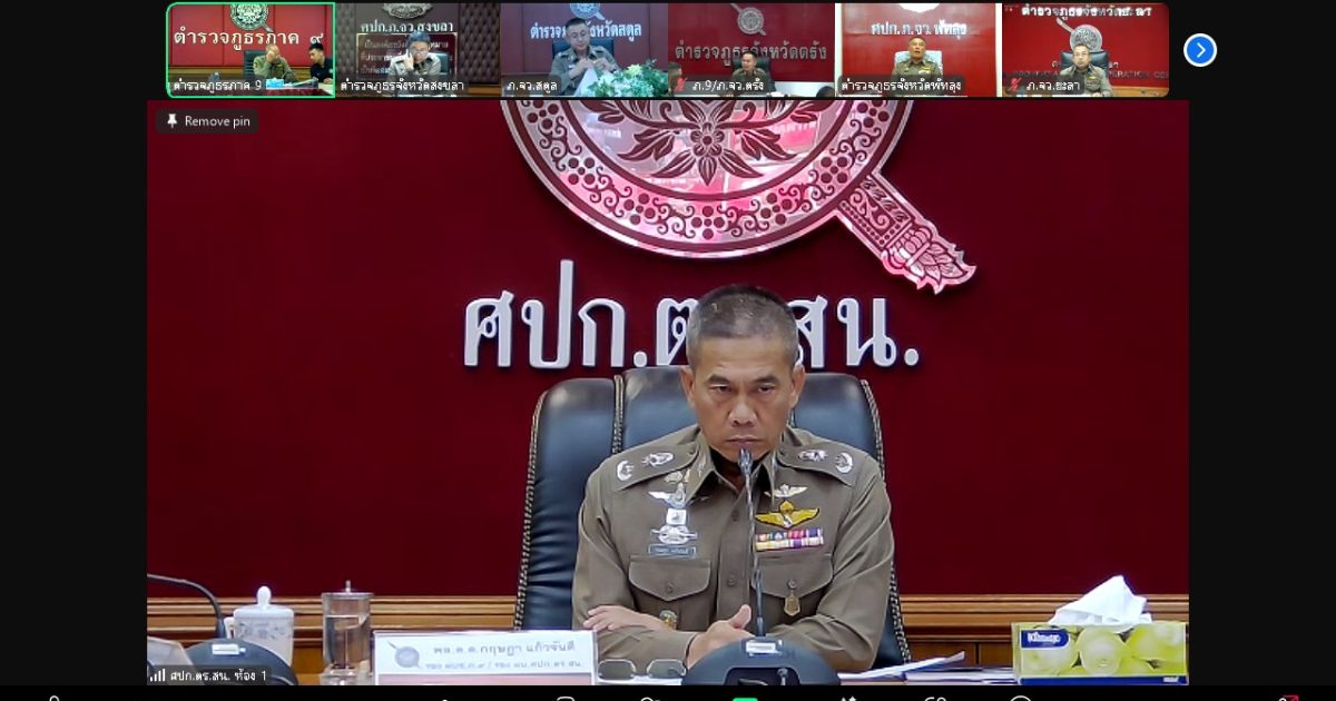 ณ ห้องประชุม ศปก.ภ.จว.พัทลุง และมี สภ.ในสังกัด เฝ้าฟังการประชุมผ่านระบบ zoom ณ ที่ตั้งหน่วย