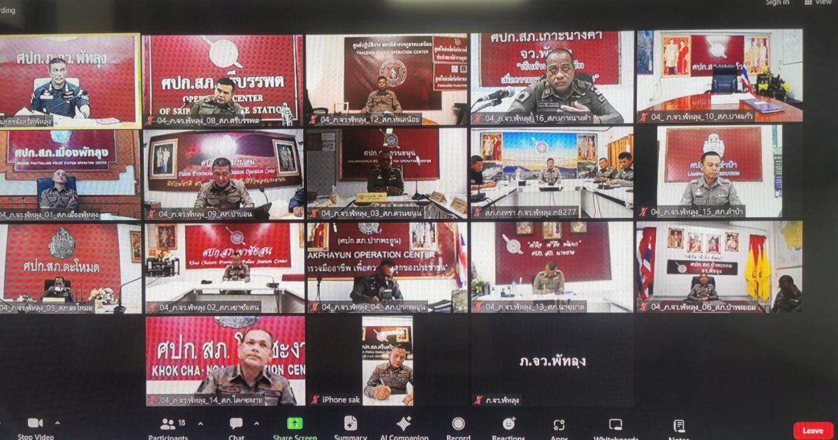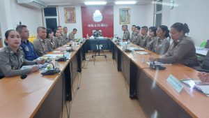 พร้อมด้วยข้าราชการตำรวจฝ่ายอำนวยการ, กก.สส.ฯ , กลุ่มงานสอบสวนฯ และ ศอ.ปส.ฯ ร่วมประชุมขับเคลื่อน ศปก.ภ.จว.พัทลุง ณ ห้องประชุม ศปก.ภ.จว.พัทลุง โดยมี หน.สภ.และผู้เกี่ยวข้องร่วมประชุม ณ ที่ตั้งหน่วย