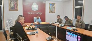 พร้อมด้วย เจ้าหน้าที่ที่เกี่ยวข้อง ร่วมประชุมติดตามเหตุตรวจยึดยาเสพติดให้โทษประเภทที่ 1 (ยาบ้าและยาไอซ์) พื้นที่ สภ.นาขยาด