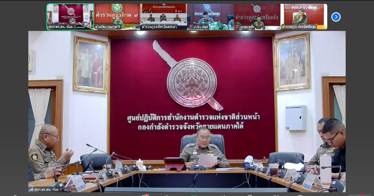 หน.สภ.ในสังกัด ภ.จว.พัทลุง พร้อมด้วยข้าราชการตำรวจฝ่ายอำนวยการ, กก.สส.ฯ, กลุ่มงานสอบสวนฯ และ ศอ.ปส.ฯ ร่วมประชุม ศปก.ตร.สน. (war room 7 จว.) ณ ห้องประชุม ศปก.ภ.จว.พัทลุง โดยมี พล.ต.ท.ปิยะวัฒน์ เฉลิมศรี ผบช.ภ.9 เป็นประธาน