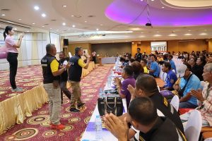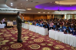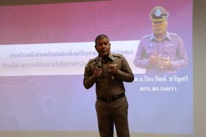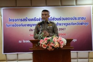 วันที่ 23 พ.ย.66 เวลา 09.00 น. พล.ต.ต.ณฐกรญ์ กาญจนาภรณ์ ผบก.ภ.จว.พัทลุง เป็นประธานในพิธีเปิดการฝึกอบรมโครงการสร้างเครือข่ายการมีส่วนร่วมของประชาชนในการป้องกันอาชญากรรมระดับตำบล ประจำปีงบประมาณ พ.ศ.2566 โดยมี พ.ต.อ.ภาสกร ภักดีวานิช รอง ผบก.ภ.จว.พัทลุง และทีมวิทยากร ดำเนินการฝึกอบรม มีผู้เข้ารับการฝึกอบรมเป็นประชาชนทุก สภ.ในพื้นที่ จำนวน 800 คน ณ โรงแรมชัยคณาธานี ต.คูหาสวรรค์ อ.เมืองพัทลุง จว.พัทลุง