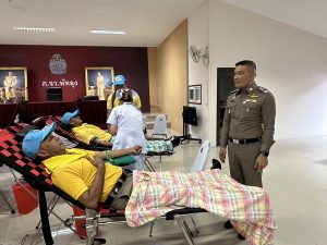 วันที่ 1 ธ.ค.66 เวลา 09.30 น. พล.ต.ต.ณฐกรญ์ กาญจนาภรณ์ ผบก.ภ.จว.พัทลุง พร้อมด้วย พ.ต.อ.ธีรศักดิ์ ไชยโยธา รอง ผบก.ภ.จว.พัทลุง ร่วมกิจกรรมจิตอาสาบริจาคโลหิต เนื่องในวันคล้ายวันพระราชสมภพของพระบาทสมเด็จพระบรมชนกาธิเบศร มหาภูมิพลอดุยเดชมหาราช บรมนาถบพิตร โดยมี ข้าราชการตำรวจในสังกัด ภ.จว.พัทลุง ร่วมบริจาคโลหิตจำนวน 200 นาย เพื่อถวายเป็นพระราชกุศล