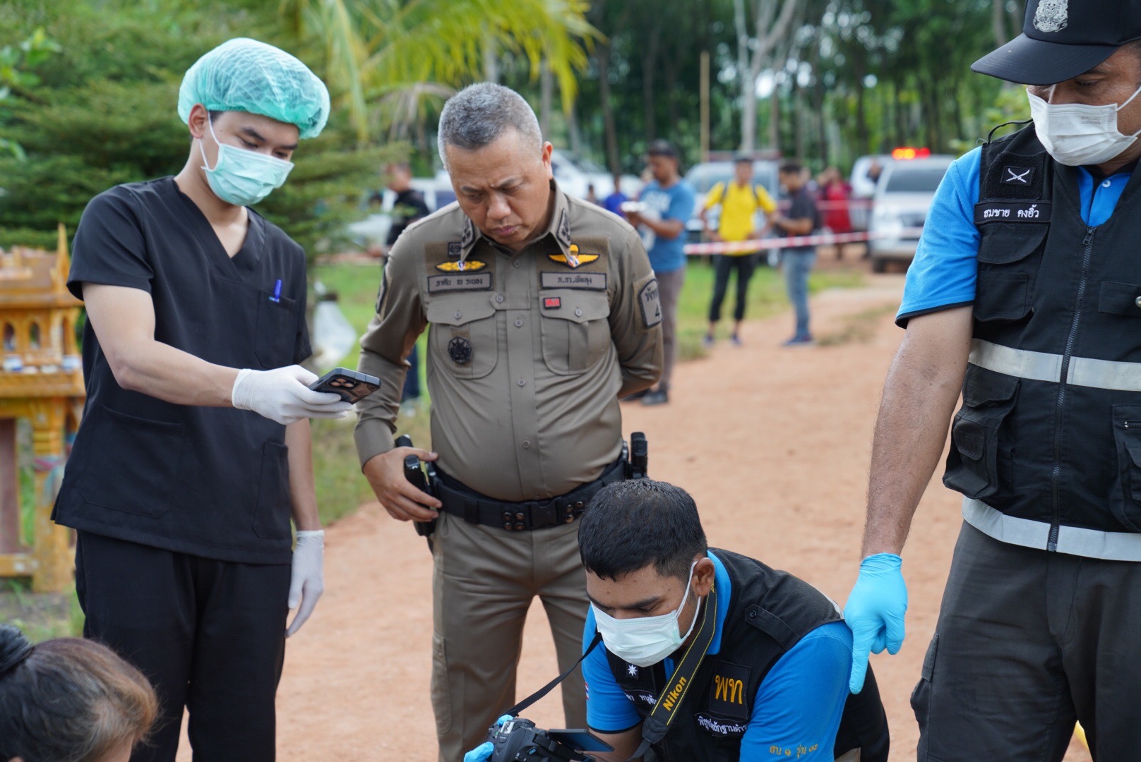 ตรวจสอบสถานที่เกิดเหตุ กรณีคนร้ายใช้อาวุธปืนยิงผู้อื่นถึงแก่ความตาย