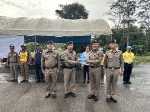 พร้อมนี้ ผบก.ภ.จว.พัทลุง ได้มอบน้ำดื่ม ให้แก่เจ้าหน้าที่ประจำจุดตรวจฯเพื่อเป็นขวัญกำลังใจในการปฏิบัติหน้าที่ต่อไป