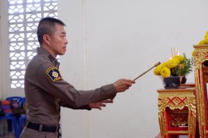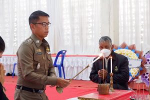 พร้อมข้าราชการตำรวจในสังกัด เป็นเจ้าภาพสวดพระอภิธรรมศพ ด.ต.สมเกียรติ์ เตยแก้ว ผบ.หมู่ (ป.) สภ.ป่าพะยอม