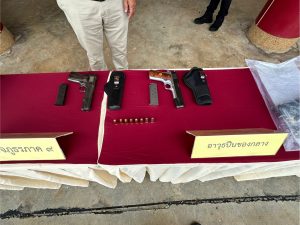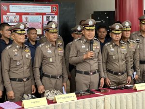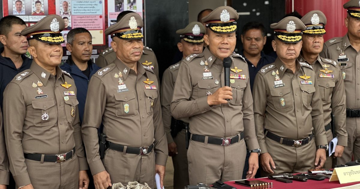 พล.ต.ต.ณฐกรญ์ กาญจนาภรณ์ ผบก.ภ.จว.พัทลุง พ.ต.อ.ธนสิทธิ์ จงหวัง รอง ผบก.ภ.จว.พัทลุง และหน่วยที่เกี่ยวข้อง ร่วมแถลงข่าวการจับกุม นายสุพัฒน์ อดีตนายกเทศบาลตำบลป่าบอน พร้อมลูกชาย ผู้ต้องหาในคดี ยิง นายพงษ์ธนา พรหมคง หรือ สท.แทน บาดเจ็บ และลูกน้อง สท.แทน เสียชีวิต เหตุเกิดเมื่อวันที่ 13 ก.ค.67 สามารถจับตัวผู้ต้องหาทั้งสองคนได้ที่ จว.ชุมพร ในวันที่ 16 ก.ค.67 ขณะหลบหนีพร้อมของกลาง และอยู่ระหว่าง พงส.สภ.ปากพะยูน ดำเนินคดีตามกฎหมายต่อไป