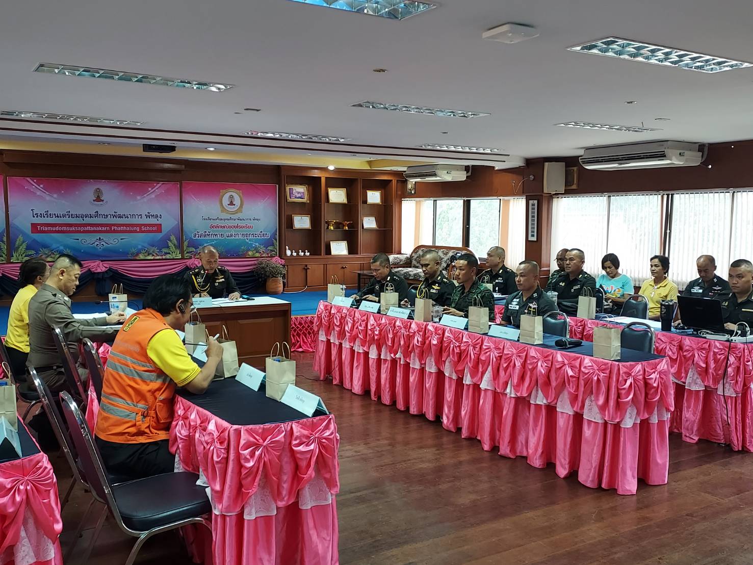 ประชุมเตรียมการ ถปภ. ประจำพื้นที่ เพื่อรับทราบความพร้อมของหน่วย ณ โรงเรียนเตรียมอุดมศึกษาพัฒนาการพัทลุง