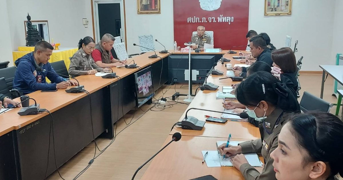 พร้อมด้วย ฝ่ายอำนวยการ ฯ กลุ่มงานสอบสวนฯ กก.สส.,ศอ.ปส.,ศูนย์รับแจ้งเหตุ 191 เข้าร่วมประชุม ศปก.ภ.จว.พัทลุง