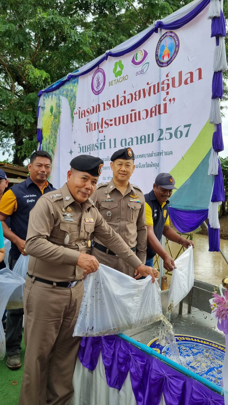 ปล่อยพันธุ์ปลาร่วมกับคณะรัฐมนตรีว่าการกระทรวงอุตสาหกรรม(นายเอกนัฏ พร้อมพันธุ์) ในการเดินทางมาตรวจราชการและมอบนโยบายในพื้นที่จังหวัดพัทลุง
