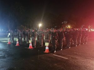 พ.ต.อ.วรวุฒิ กิติศักดิ์รณกรณ์ ผกก.สืบสวน 3 บก.สส.ภ.9 พ.ต.อ.ยุทธศักดิ์ เอี่ยมสุนทร ผกก.สส.ภ.จว.พัทลุง พ.ต.อ.สมปราช กรรณกานนท์ ผกก.สภ.เมืองพัทลุง พ.ต.ท.ฮากีม หมัดอาด้ำ รอง ผกก.ป.ฯ พ.ต.ท.ณัฐศิษฏ์ ชูเพชร สวป.สภ.เมืองพัทลุง พร้อมชุด ชป.สภ.เมืองพัทลุง ชป.กก.สืบสวน3 บก.สส.ภ.9 ชป.กก.สส.ภ.จว.พัทลุง ปล่อยแถวกำลังชุดปฏิบัติการตั้งจุดตรวจเฉพาะกิจ ระดมกวาดล้างอาชญากรรมในพื้นที่ อ. เมืองพัทลุง จ.พัทลุง ตรวจจำนวน ความพร้อมอุปกรณ์ ชี้แจงภารกิจพร้อมกำชับการปฏิบัติ ก่อนปฏิบัติหน้าที่