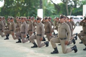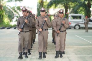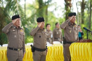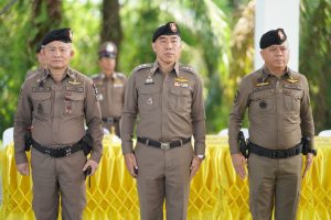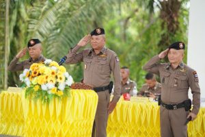 พ.ต.อ.ภาคิน ณ ระนอง รอง ผบก.ภ.จว.พัทลุง พร้อมด้วย คณะกรรมการประกวดการฝึกระดับ ภ.9