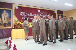 พิธีประดับเครื่องหมายยศให้แก่ข้าราชการตำรวจที่ได้รับการแต่งตั้งว่าที่ยศ และแต่งตั้งข้าราชการตำรวจชั้นประทวนยศ ด.ต.ที่มีอายุ 53 ปีขึ้นไป