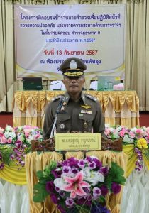 เป็นประธานพิธีเปิด พร้อมด้วย หน.สภ.ข้าราชการตำรวจในสังกัดภ.จว.พัทลุง และจนท.ที่เกี่ยวข้องเข้าร่วมพิธีเปิดโครงการฝึกอบรมข้าราชการตำรวจเพื่อปฏิบัติหน้าที่ถวายความปลอดภัย และถวายความสะดวกด้านการจราจรในพื้นที่รับผิดชอบ ตำรวจภูธรภาค 9 ประจำปีงบประมาณ พ.ศ.2567