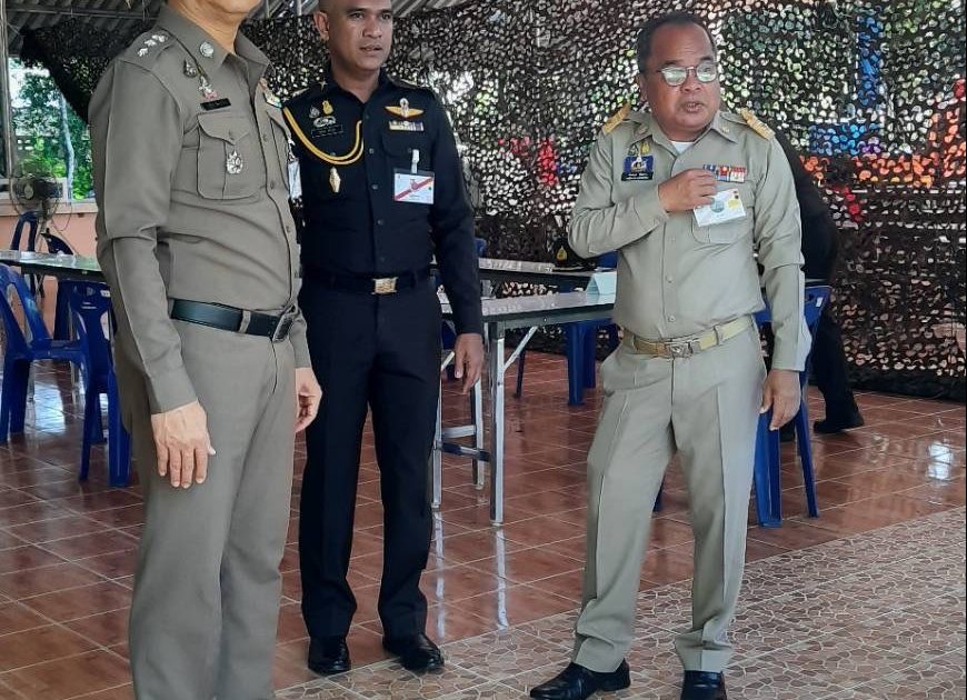 นายก้องสกุล จันทราช รองผู้ว่าราชการจังหวัดพัทลุง ตรวจเยี่ยม กอร.ถปภ.ที่หมายเสด็จฯ โดยมี