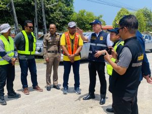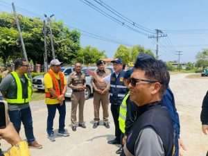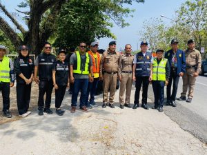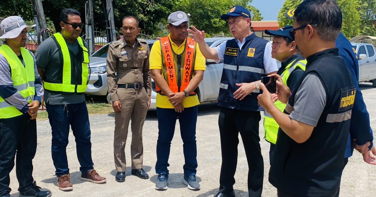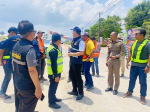 ร่วมกันลงพื้นที่ตรวจถนนที่กำลังก่อสร้างเพื่อแก้ปัญหาการจราจรให้ประชาชนเดินทางสัญจรอย่าปลอดภัยในช่วงเทศกาลสงกรานต์ ประจำปี 2569