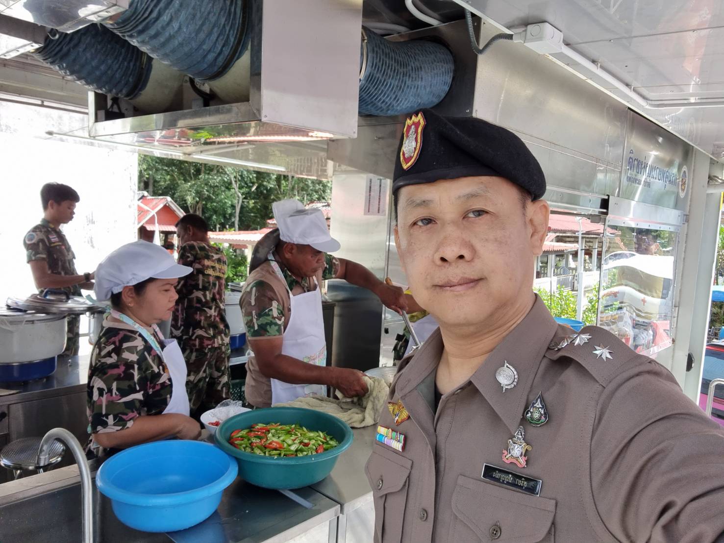 ร่วมกับหน่วยเคลื่อนที่ รถครัวสนามเคลื่อนที่ กรมอุทยานแห่งชาติสัตว์ป่าและพันธุ์พืช จัดทำอาหารแจกจ่ายผู้ประสบอุทกภัย