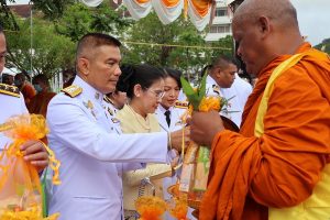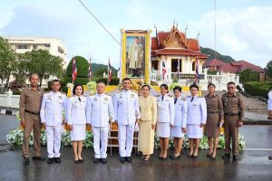 วันที่ 5 ธ.ค.66 เวลา 07.00 น. พล.ต.ต.ณฐกรญ์ กาญจนาภรณ์ ผบก.ภ.จว.พัทลุง พร้อมด้วย พญ.วันวิสาข์ กาญจนาภรณ์ ประธานแม่บ้านตำรวจ ภ.จว.พัทลุง และข้าราชการตำรวจในสังกัด ภ.จว.พัทลุง ร่วมกิจกรรมเนื่องในวันคล้ายวันพระบรมราชสมภพ พระบาทสมเด็จพระบรมชนกาธิเบศร มหาภูมิพลอดุลยเดชมหาราช บรมนาถบพิตร วันชาติ และวันพ่อแห่งชาติ 5 ธ.ค.66 ร่วมพิธีเจริญพระพุทธมนต์ และทำบุญตักบาตรถวายพระราชกุศล และพิธีวางพานพุ่มดอกไม้ถวายสักการะ โดยมี นางนิศากร วิศิษฏ์สรอรรถ ผวจ.พัทลุง เป็นประธานในพิธี ณ ศาลาจตุรมุขพระพุทธนิรโรคันตรายชัยวัฒน์จตุรทิศ, อาคารหอประชุมจังหวัดพัทลุง