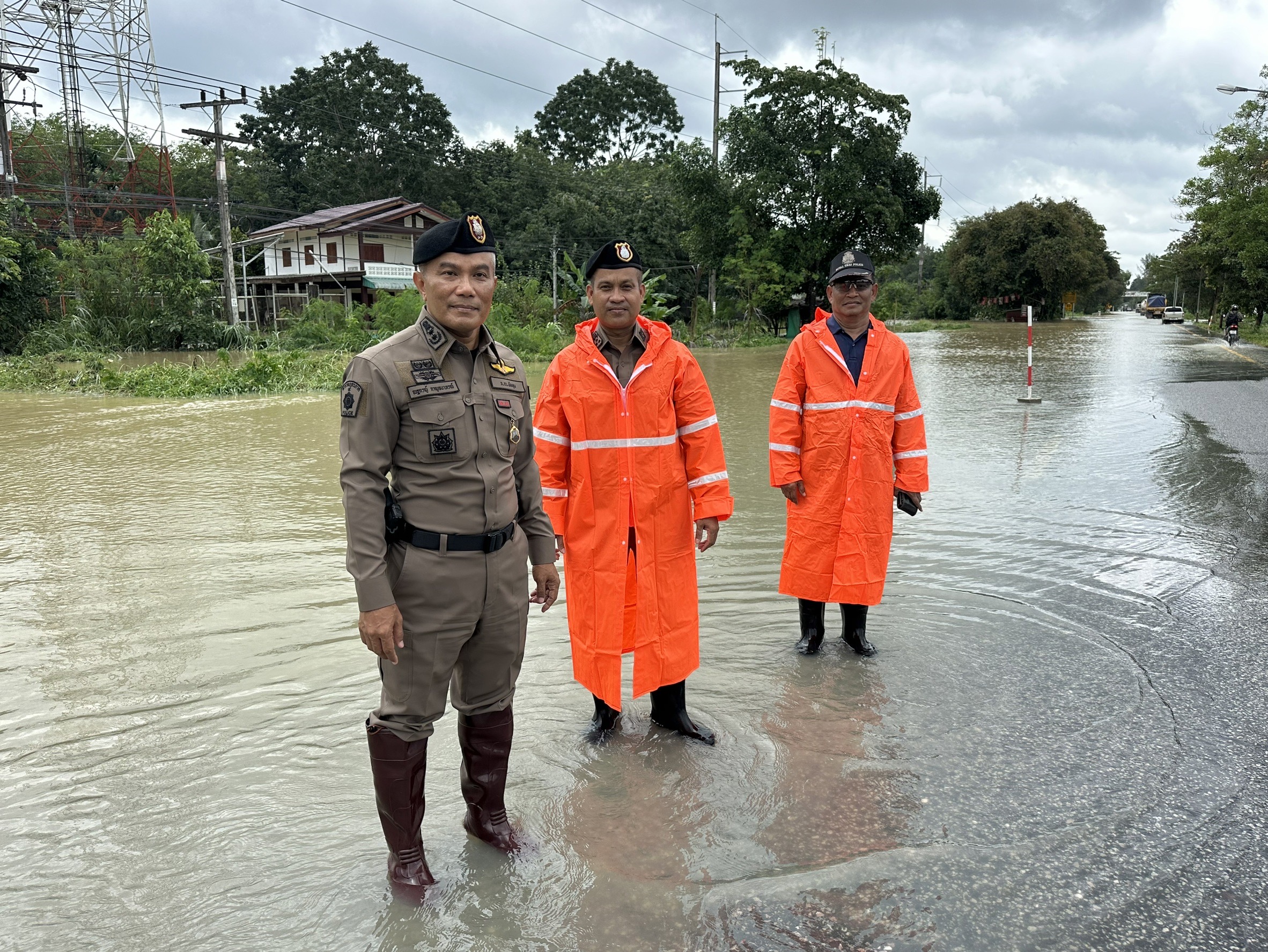 ร่วมตรวจสภาพน้ำในพื้นที่ทางหลวงหมายเลข 4 บริเวณบ้านโคกยา พื้นที่ สภ.เขาชัยสน