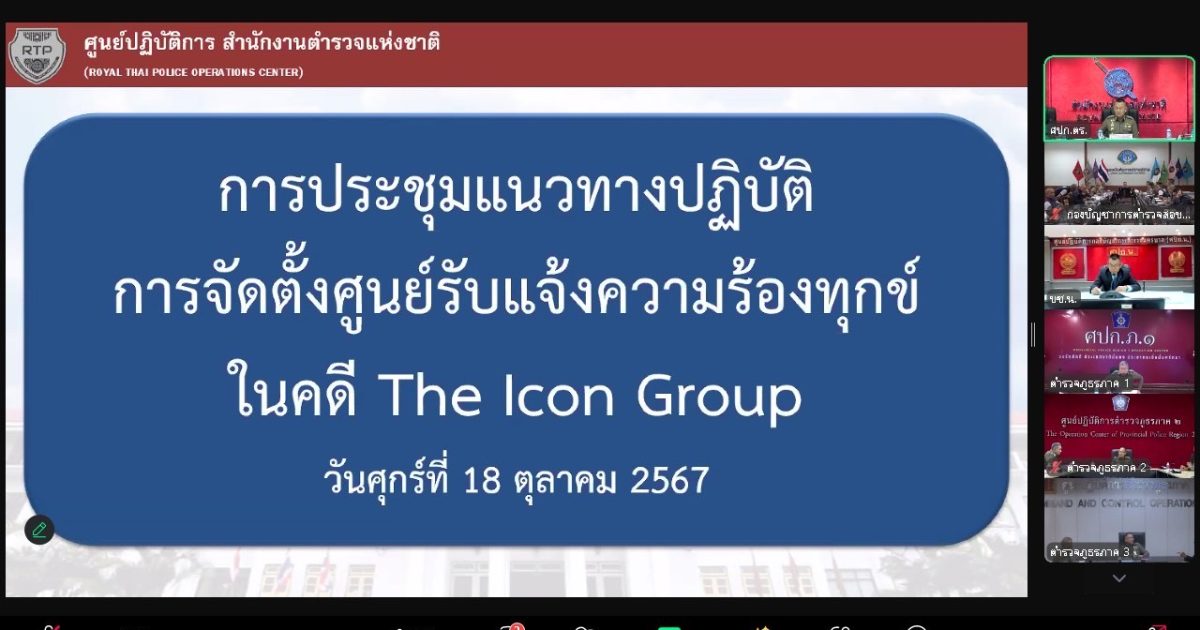 เข้าร่วมประชุมแนวทางปฏิบัติการจัดตั้งศูนย์รับแจ้งความร้องทุกข์ในคดี The lcon Group ผ่านระบบออนไลน์ zoom
