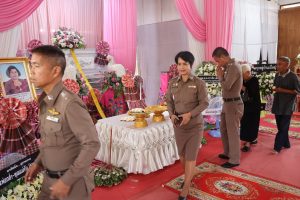 ร่วมพิธีฌาปนกิจศพ คุณแม่สคราญ โรจนรัตน์ มารดาของ ร.ต.อ.หญิง ศิริพร ปานทุ่ม รอง สว.ฝอ.ภ.จว.พัทลุง