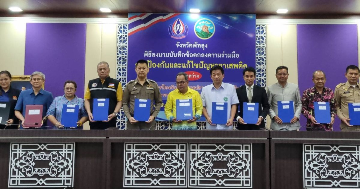 ร่วมพิธีลงนามบันทึกข้อตกลงความร่วมมือการป้องกันและแก้ไขยาเสพติดระหว่างศูนย์อำนวยการป้องกันและปราบปรามยาเสพติดจังหวัดพัทลุง
