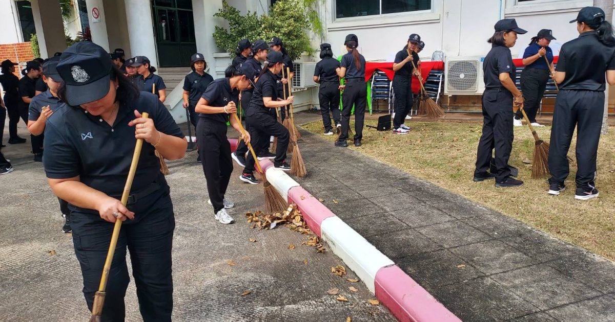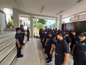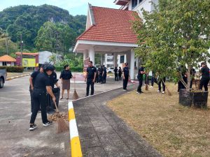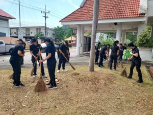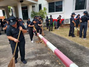 ร่วมลงแถวเพื่อพัฒนาหน่วย ณ บริเวณหน้าอาคาร ที่ทำการ ภ.จว.พัทลุง