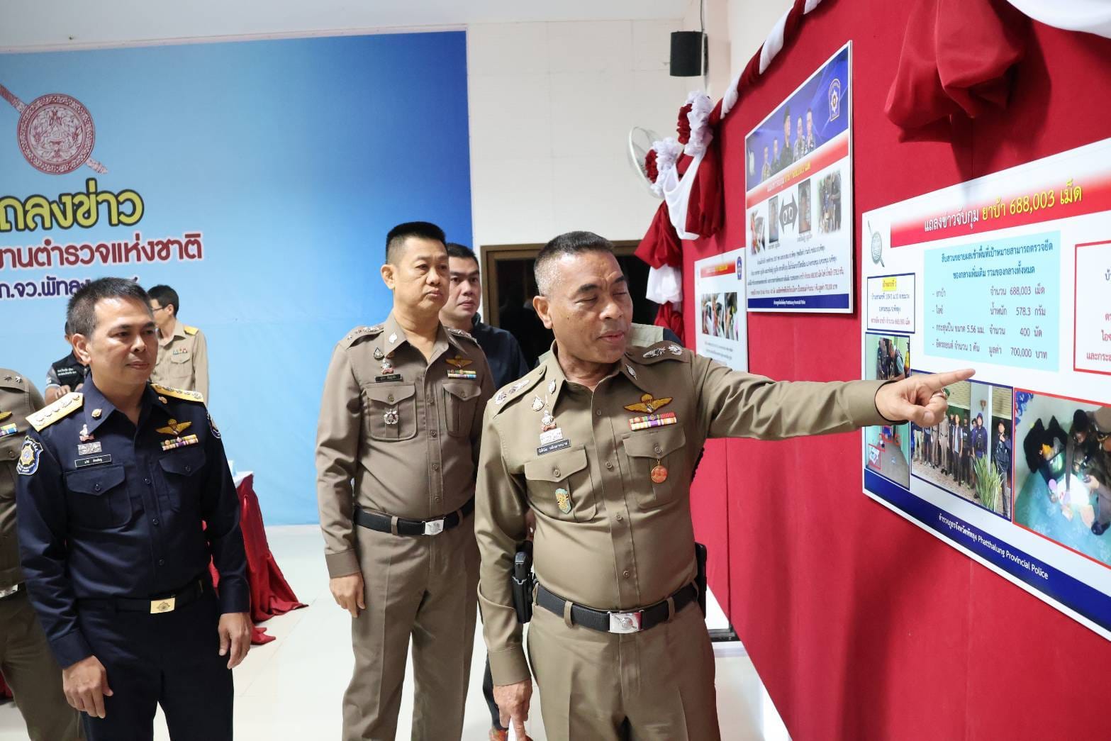 ร่วมแถลงข่าวกรณีจับกุมคดียาเสพติดรายสำคัญ จำนวน 688,003 เม็ด