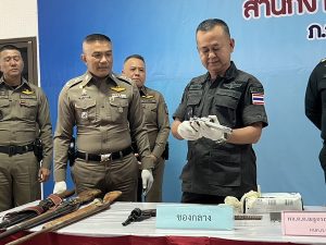 ร่วมแถลงข่าวผลการจับกุมอาวุธปืนและยาเสพติด