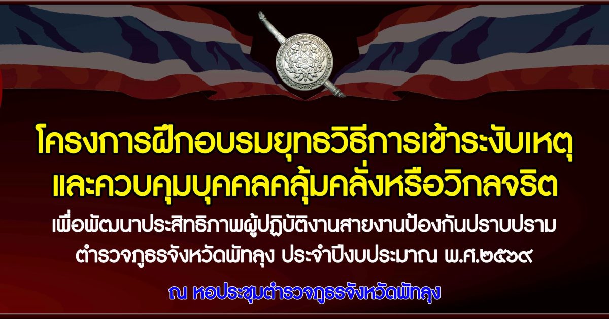 🔹เปิดโครงการฝึกอบรมยุทธวิธีการเข้าระงับเหตุและควบคุมบุคคลคลุ้มคลั่งหรือวิกลจริต เพื่อพัฒนาประสิทธิภาพ