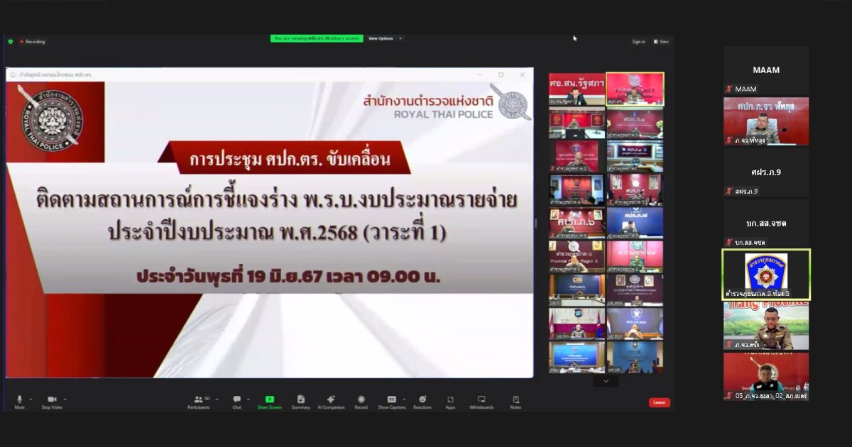 งบประมาณรายจ่ายประจำปีงบประมาณ พ.ศ.2568 ระบบทางไกลผ่านจอภาพ โดยมี พล.ต.อ.สราวุฒิ การพานิช รอง ผบ.ตร.(บร) เป็นประธาน ในส่วน ภ.9 มี พล.ต.ต.นรินทร์ บูสะมัญ รอง ผบช.ภ.9 เป็นประธานการประชุม