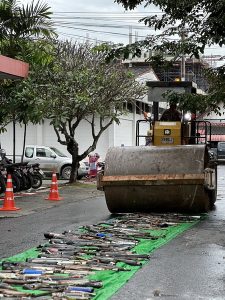 วันที่ 23 พ.ย.66 เวลา 10.30 น. พล.ต.ต.ณฐกรญ์ กาญจนาภรณ์ ผบก.ภ.จว.พัทลุง พร้อมด้วย พ.ต.อ.ธนสิทธิ์ จงหวัง ผกก.สภ.เมืองพัทลุง, รอง ผกก.ป.ฯ, รอง ผกก.สส.ฯ และข้าราชการตำรวจ สภ.เมืองพัทลุง แถลงข่าวผลการทำลายท่อไอเสียรถจักรยานยนต์ที่ถูกตรวจยึดจากผู้กระทำผิด โดย สภ.เมืองพัทลุง ได้จัดให้มีการทำลายท่อไอเสีย และกระทำเป็นการเปิดเผยต่อหน้าสาธารณะชน สื่อมวลชนทุกแขนง เพื่อจะได้แจ้งให้ประชาชนทั่วไป และผู้ที่คิดจะกระทำผิดกฎหมายในเรื่องของการแข่งรถในทาง หรือขับรถโดยไม่คำนึงถึงความปลอดภัยของผู้อื่น การรวมกลุ่ม หรือมั่วสุมโดยในลักษณะ หรือพฤติการณ์ที่น่าจะนำไปสู่การแข่งรถในทาง โดยมี ผบก.ภ.จว.พัทลุง เป็นประธานในพิธี ณ หน้าที่ทำการ สภ.เมืองพัทลุง