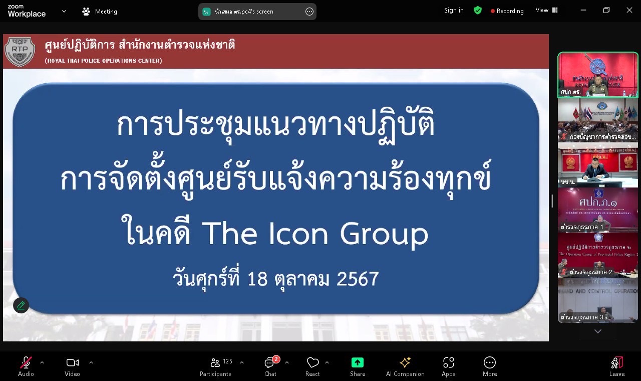 ร่วมประชุมแนวทางปฏิบัติการจัดตั้งศูนย์รับแจ้งความร้องทุกข์ในคดี The lcon Group