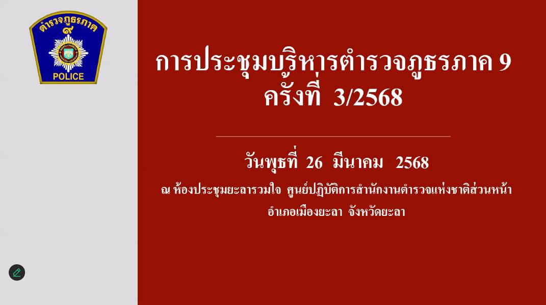 วันที่ 26 มี.ค.68 เวลา 09.30 น. พล.ต.ต.เชาวลิต เลี้ยงสุพงศ์ ผบก.ภ.จว.พัทลุง ร่วมประชุมบริหารตำรวจภ